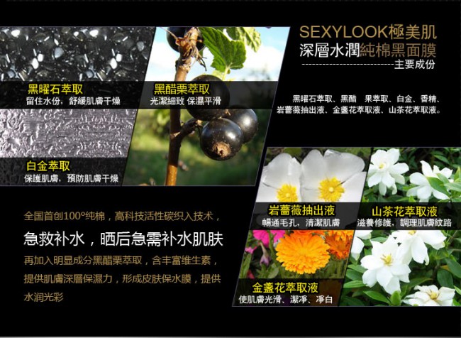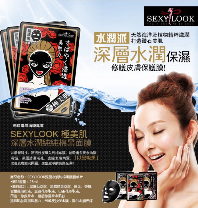 ◆商品名稱:SexyLook 深層水潤純棉黑面膜